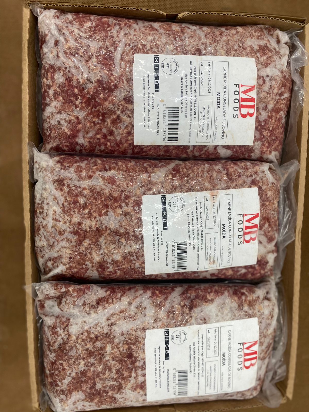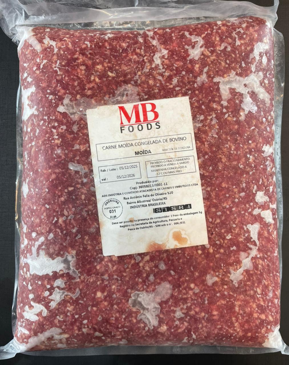 CARNE MOIDA BOVINA CONGELADA SEGUNDA MB FOODS 2KG