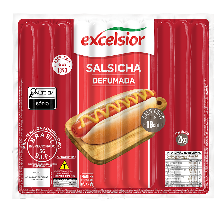 SALSICHA HOT DOG DEFUMADA 18CM EXCELSIOR 2 KG